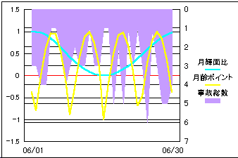 事故総発生件数と月の輝面比と月齢から比較