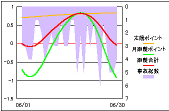 事故総発生件数と月と太陽の距離変化を比較