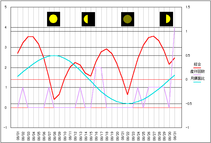 当サイトの危険度グラフの算出項目の変更から、昨年10月分から当ページでも月齢ポイントを位相ポイントに変更しました。