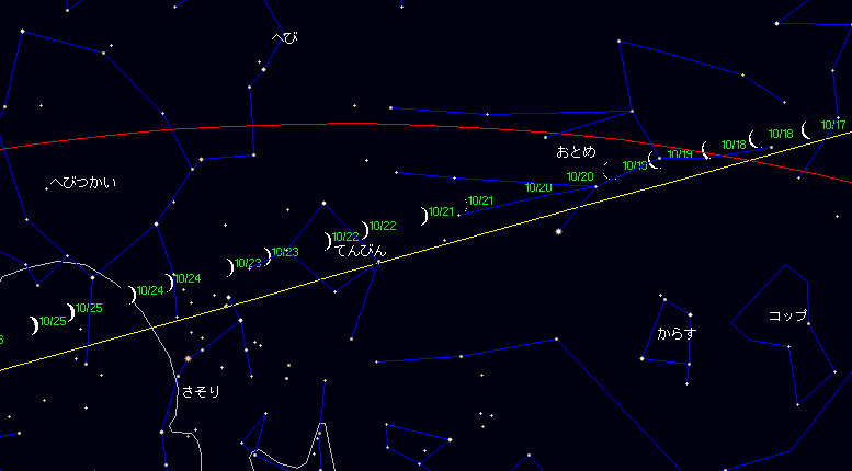 新月(19:09) 金星が月の北2゜55’に接近(13:30) |