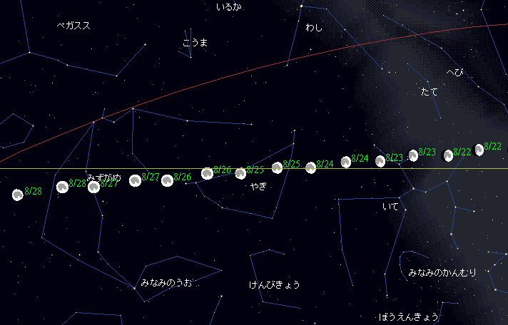 ![]() ![]() | 月が黄道を通過:黄緯0゜(19:23)降交点 |