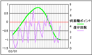 太陽と地球の距離変化を平均距離比率として比較。 上旬から再接近をし遠ざかっています。 単一要素だけでは、やはり産仔回数とは一致していません。 |