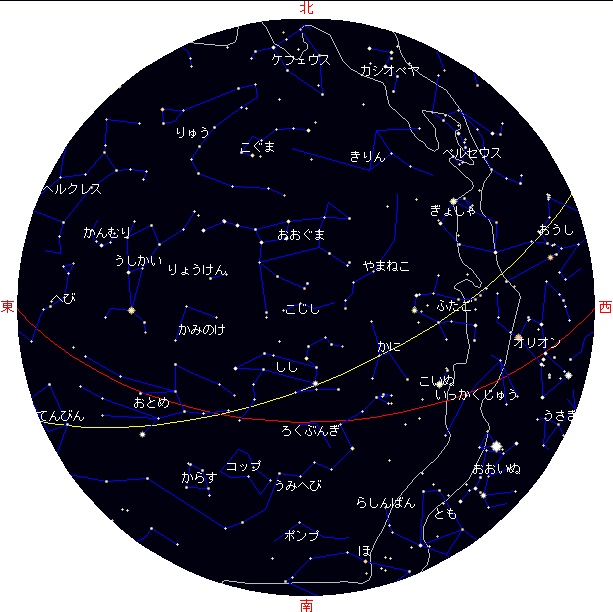 4月の7日午後9時、20日午後20時の空を示します。