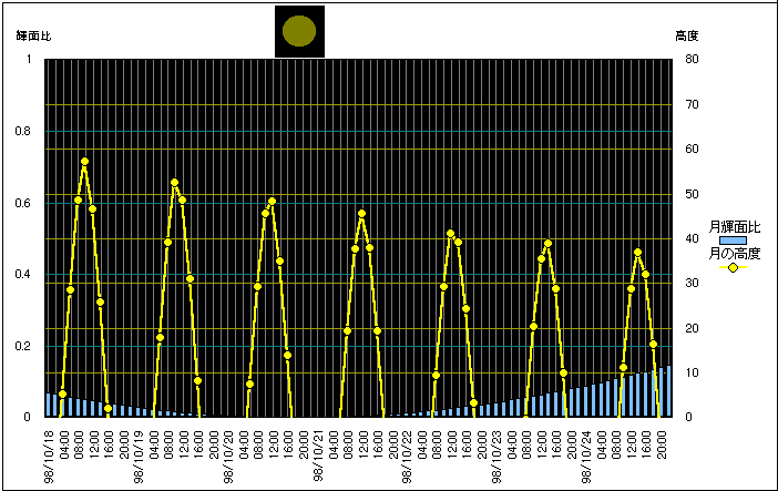 ![]() | 任意日時で月齢や月と太陽の位置や距離を算出します。 | |